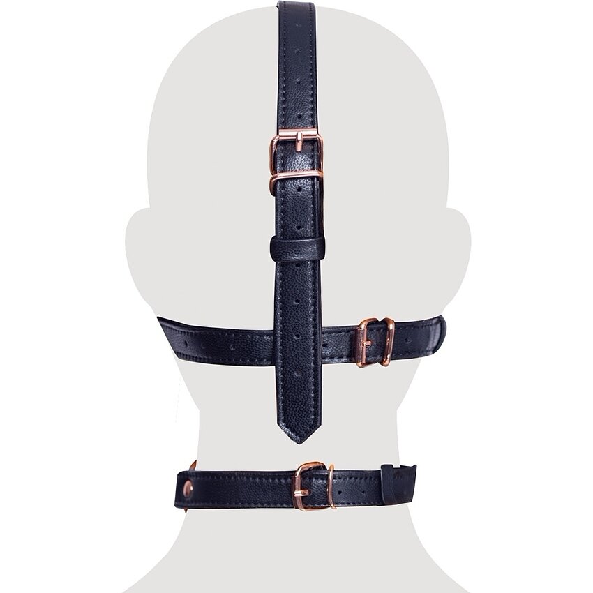 Caracteristici și beneficii: - Ajustare simplă cu catarame ajustabile pentru potrivire personalizată - Bila orală din silicon, diametru Ø4 cm, rezistentă și igienică - Material principal: poliuretan ecologic cu alură de piele - Elemente metalice de colorație roz auriu pentru un finisaj elegant - Edificare durabilă, ușor de întreținut