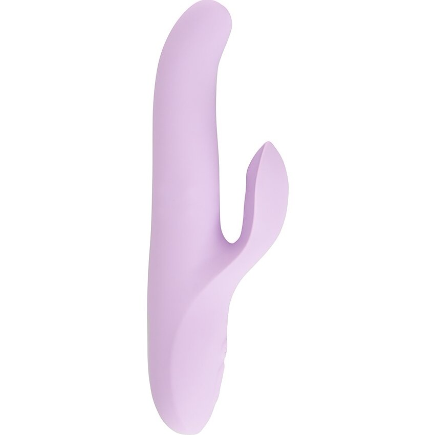 Vibrator Sweet Smile Thrusting Pearl, două motoare: 10 moduri de vibrație (clitoral) și 5 chipuri de împingere/rotire (tijă). Silicon moale, rezistent la apă, cu acumulator USB. Inserabil 13 cm.