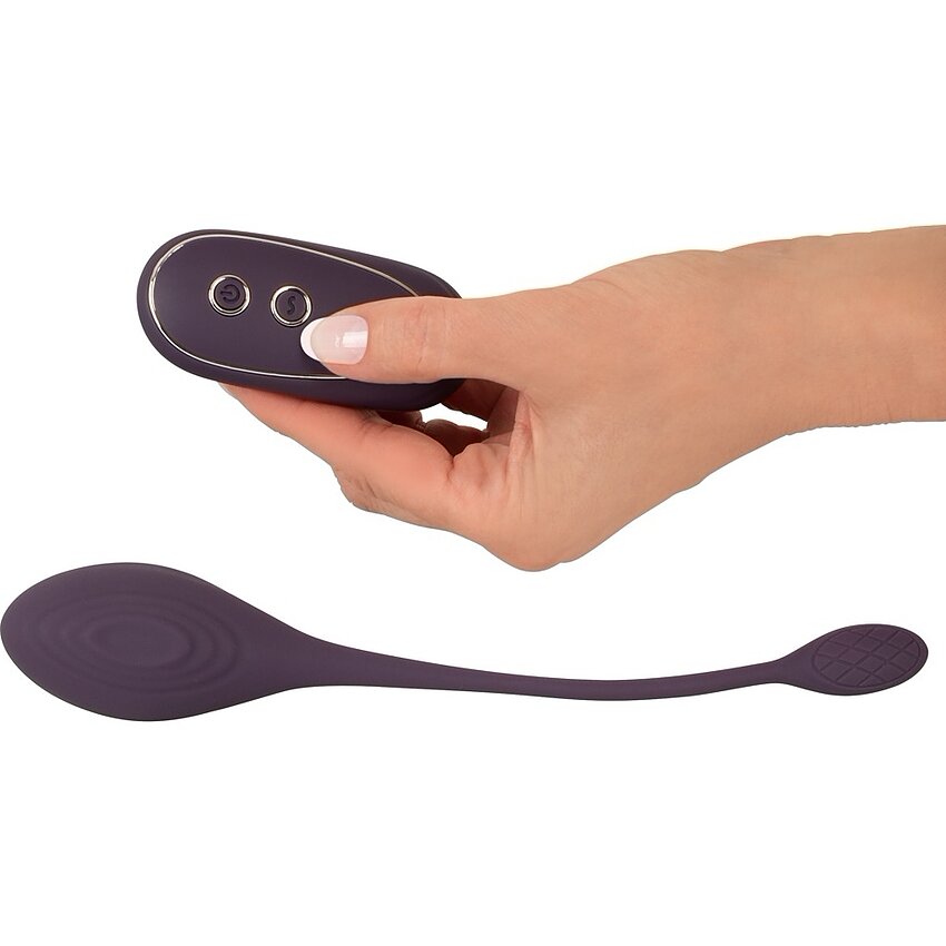 Ou vibrațional cu acumulator cu 10 maniere de vibraţie, tele-comandă wireless (raza 5 m), carcasă din silicon catifelat și corp ABS. Compact (61 g), inserabil 8 cm, calibru 3,9 cm. Trainic la apă; husă şi cablu USB incluse.