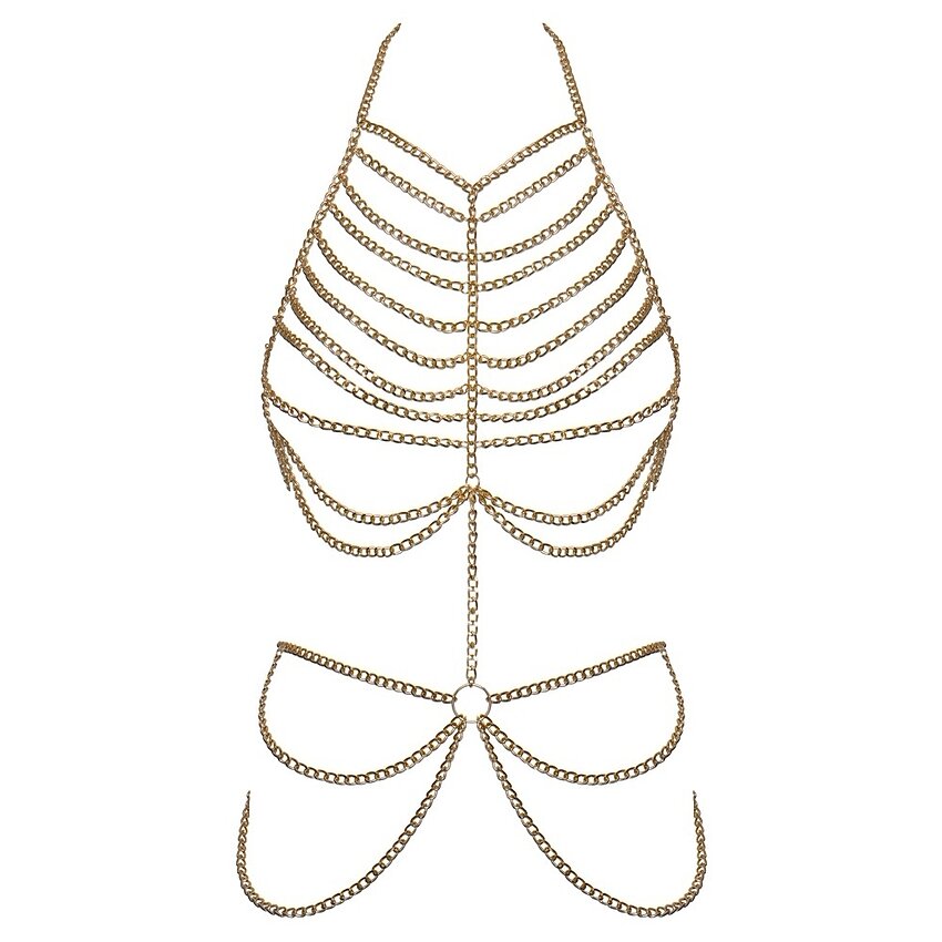 Crește un accent sofisticat oricărei ținute cu lanțul de corp aurit de la Cottelli Collection. Designul în două componente și decorul generos din lanțuri urmează contururile corpului, punând la dispoziție un urmare grațios și luminos.