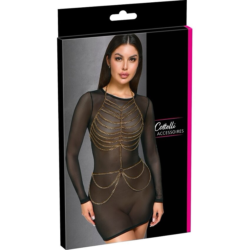 Lanț de corp aurit Cottelli Collection, design în două componente cu ornament de lanțuri. Reglabil la gât și spate cu 3 cârlige snap, pentru un plus de strălucire peste costume de baie sau ținute mulate.