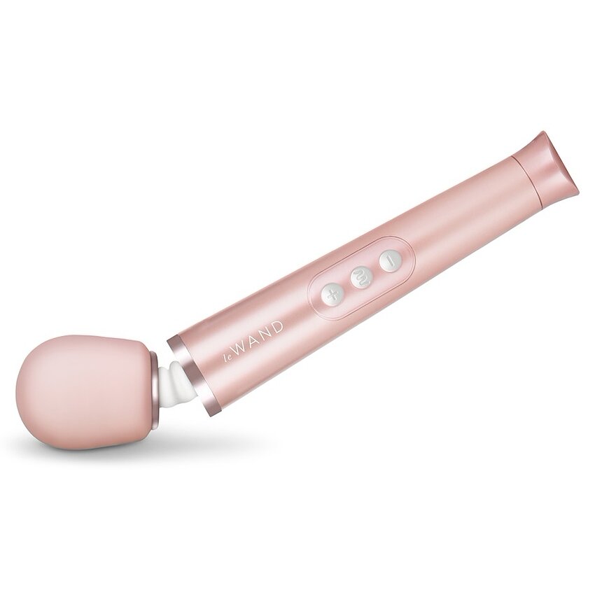 le Wand Petite — aparat compact, reîncărcabil, cu gât flexibil și cap rotund Ø4.7 cm. Furnizează 6 chipuri de vibrație în 10 viteze, blocare pentru călătorii și husă de depozitare. Corespunzător pentru relaxare grabnică și portabilitate.