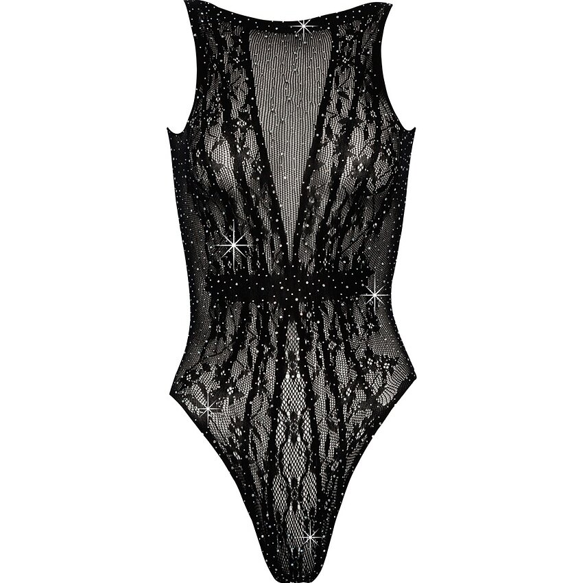 Body Cottelli Fantasy, semitransparent și elastic, acoperit integral cu strasuri. Croială fără cusături, decupaj la posterior și potrivire universală S-L. Culoare: negru.