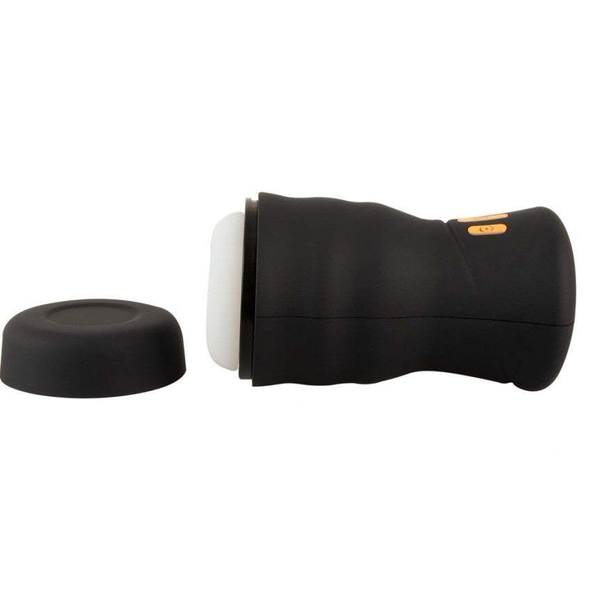 Mâneca catifelată din TPE învelește penisul cu puncte și caneluri gândite pentru stârnire detaliată. Se detașează ușor pentru curățare, iar carcasa din ABS oferă protecție și stabilitate. Carcasa conține capac protector și sistem de blocare pentru depozitare și transport discret.