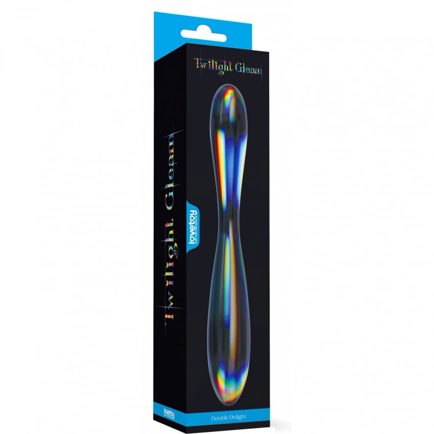 Jucărie dublă din sticlă borosilicată, cu finisaj prismat. Double Delight are două capete asimetrice și un mijloc subțiat pentru prindere precisă. Lungime totală 23,2 cm. Durabilă, netoxică și simplu de curățat; adecvată pentru inserție vaginală, anorectală sau dublă.