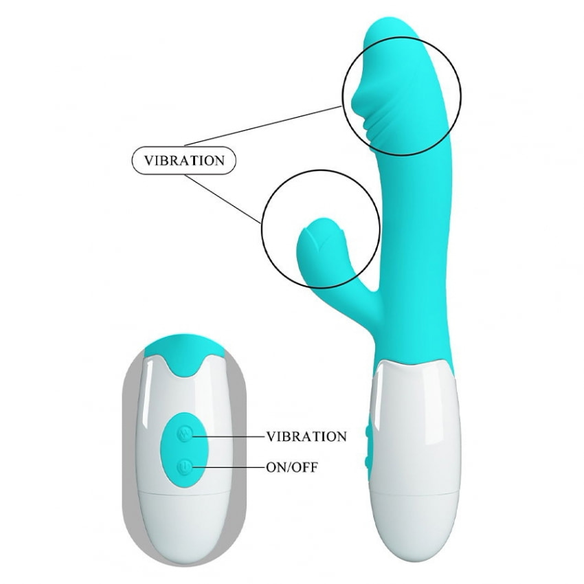 Beneficii și atribute: - Stimulare dublă: vârf pentru punctul G + braț pentru clitoris - 30 aplicații de vibrație pentru variație precisă - Design elastic care menține raportul cu clitorisul - Silicon catifelat, agreabil la atingere - Rezistent la apă pentru folosire banală și curățare - Alimentare: 2 x AAA, control necomplicat și rapid Bunul functioneaza cu 2 baterii in format AAA care vor fi adaugate in cos impreuna cu produsul. Pentru a experimenta placeri mai puternice si o glidare mai simpla ar fi de favorit folosirea unui lubrifiant. Spalati Pretty Love Snappy Rabbit Punct G, 30 Funcții, Verde inainte si dupa utilizare cu cleaneri speciali de igiena pentru astfel de produse.